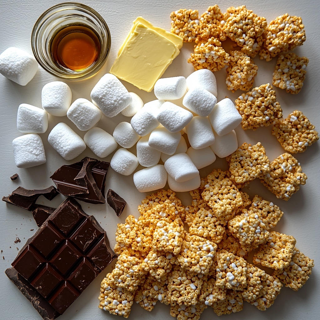 - 4 Hershey bars (broken into pieces): Melts into sweet, chocolatey pockets throughout the treat for that authentic s’mores feeling.