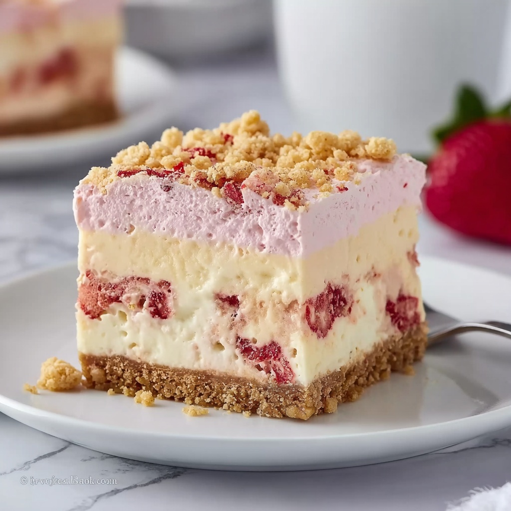 This Strawberry Cheesecake Crunch Recipe is such a treasure, blending familiar flavors into a multi-textured treat that’s sure to bring smiles at any table. Its layers of tender strawberry cake, luscious cheesecake, and crunchy topping balance beautifully, making it one of those desserts you’ll want to make again and again. So don’t hesitate—grab those ingredients, dive into baking, and get ready to share a slice of pure joy with those you love!