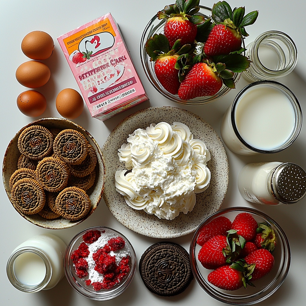 - 1 box strawberry cake mix (plus ingredients listed on the box: eggs, oil, water): The foundation of our dessert, bringing vibrant strawberry flavor and moist sponge texture.
