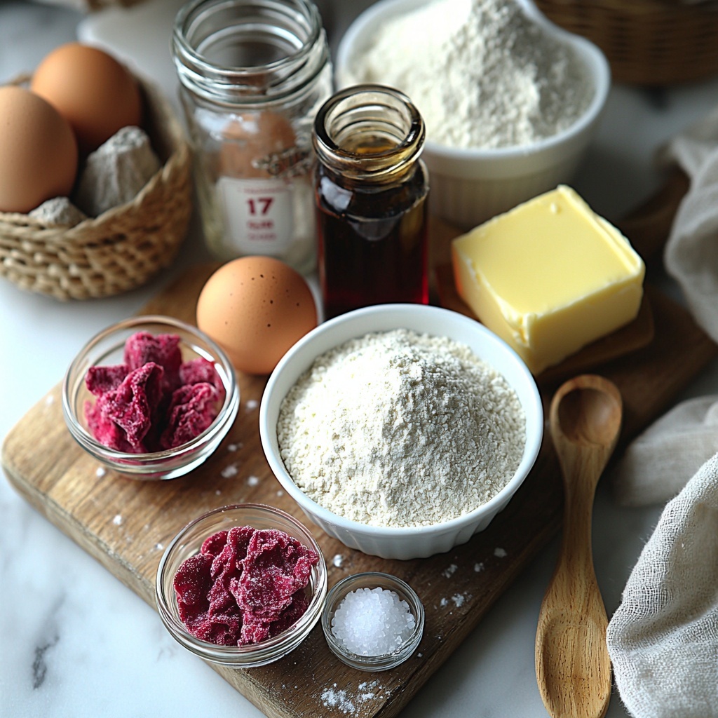 Gathering ingredients for this recipe is a breeze since each one plays a key part in delivering the cookie’s irresistible texture and flavor. From the creamy butter that makes the dough supple, to the fragrant vanilla and vibrant strawberry powder that infuse the cookies with their signature taste, every ingredient is essential.