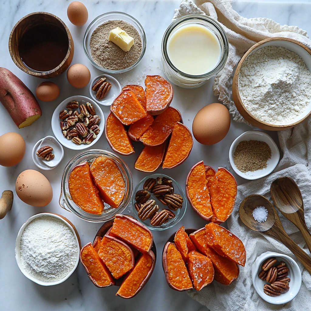 With just a handful of simple ingredients, this Sweet Potato Pie Bars Recipe comes together effortlessly. Each one plays a crucial role, from the rich sweetness of brown sugar to the comforting spices that make every bite so memorable.