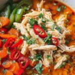 This vibrant Thai Chicken Curry features tender chicken breasts simmered in a rich and creamy coconut milk base infused with fragrant red curry paste. Colorful bell peppers, carrots, and snap peas add crunch and freshness, while fresh basil leaves provide a fragrant finish. Perfectly balanced with lime juice and low-sodium soy sauce, this dish offers a wholesome, flavorful meal that’s ready in under 45 minutes.