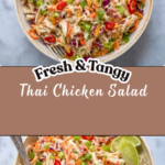 A vibrant and refreshing Thai Chicken Salad featuring shredded chicken, crunchy cabbages, colorful vegetables, and a tangy peanut dressing. This quick and easy recipe combines sweet, savory, and spicy flavors for a perfect light meal or side dish.