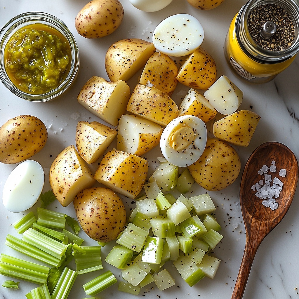 Every ingredient here is simple yet essential, coming together to deliver a perfect harmony of texture and flavor. From the hearty russet potatoes to the crisp celery and pungent Dijon mustard, each element plays its part in crafting this beloved Southern classic.