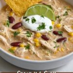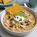 A rich and comforting White Chicken Chili made with tender shredded chicken, creamy melted cream cheese, white beans, and a blend of mild spices, slow-cooked to perfection. This hearty chili offers a delicious alternative to traditional red chili, served with optional toppings like shredded cheese, cilantro, avocado, and lime wedges for a fresh finish.