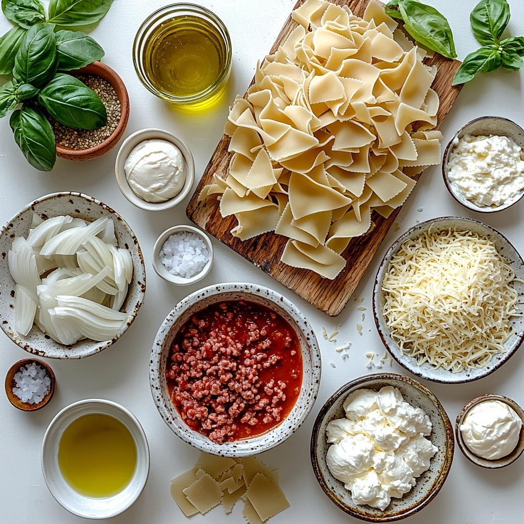 This White Lasagna Soup Recipe brings together a handful of simple, everyday ingredients that are easy to find but incredibly essential for creating that perfect balance of texture, taste, and aroma. Each item plays a vital role—from the hearty ground turkey adding lean protein, to the luscious cheeses that create that dreamy, creamy finish.
